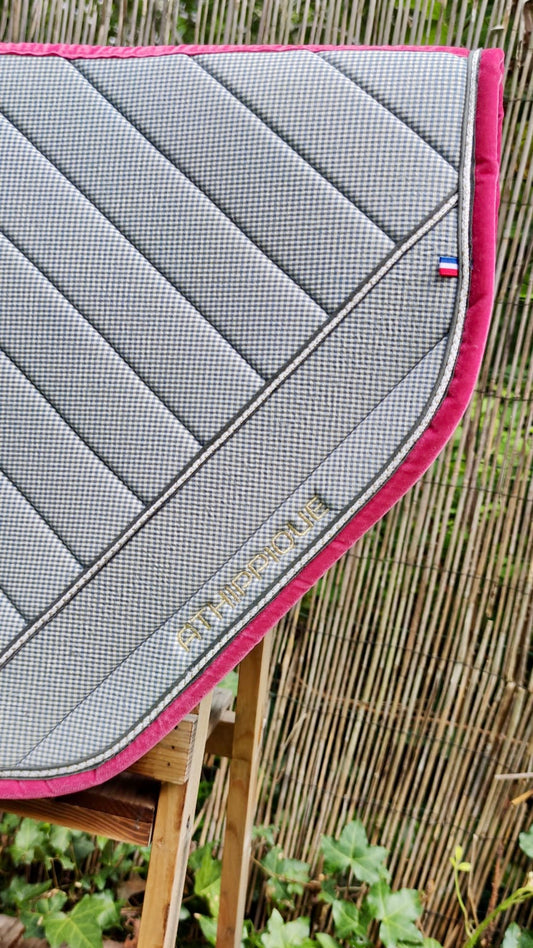 Chic et moderne, le tapis de selle Sport de Athippique se distingue par sa coupe en biais. Conçu pour le confort du cheval, il est doté d'une matelassure épaisse et d'une doublure en nid d'abeilles, assurant une absorption optimale des chocs et de la transpiration. Fabriqué en France, ce tapis de selle où chaque modèle est unique se décline en plusieurs coloris.